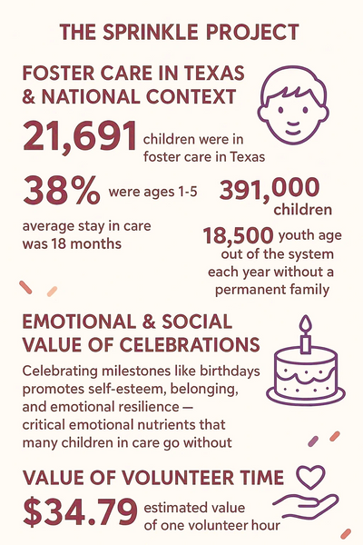 Every donation to The Sprinkle Project helps ensure children and youth in state and foster care feel celebrated and seen during life's meaningful moments.